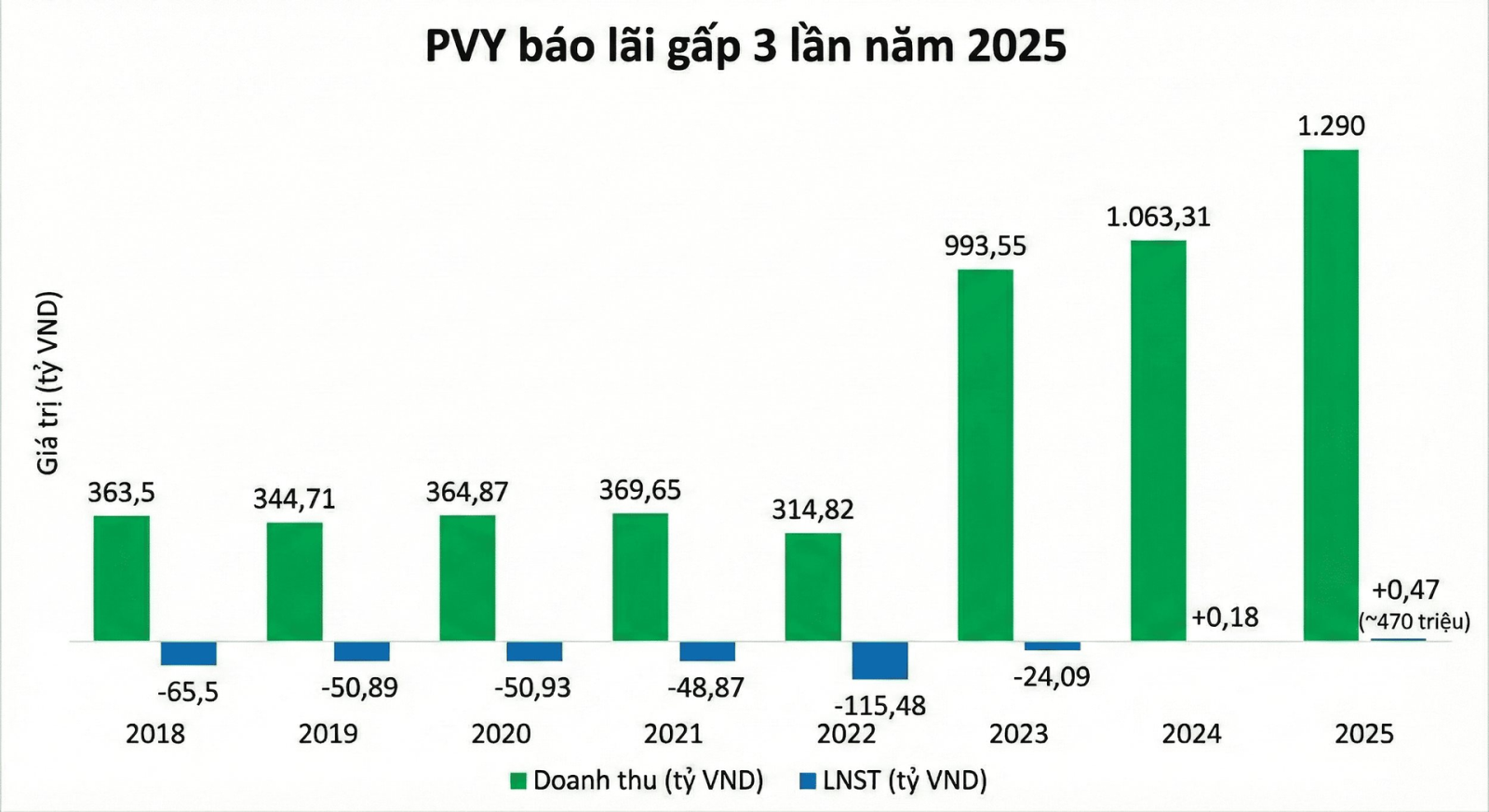 Lũy kế cả năm 2025, PVY ghi nhận doanh thu thuần đạt xấp xỉ 1.290 tỷ đồng và lợi nhuận sau thuế đạt gần 470 triệu đồng, cải thiện so với mức lãi khiêm tốn 177 triệu đồng của năm 2024, tương đương mức tăng gần 3 lần.