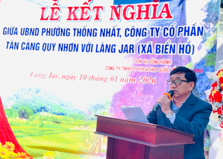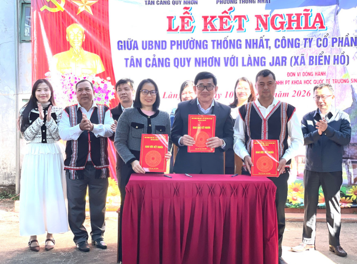 Sáng 10-1, tại nhà sinh hoạt cộng đồng làng Jar (xã Biển Hồ, tỉnh Gia Lai), UBND phường Thống Nhất, Công ty cổ phần Tân cảng Quy Nhơn cùng nhân dân làng Jar tổ chức lễ kết nghĩa.