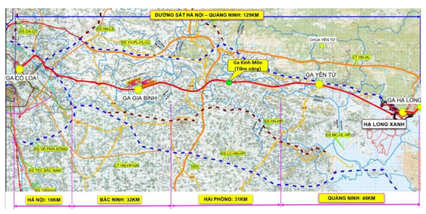 Dự án đường sắt tốc độ cao Hà Nội - Quảng Ninh sau khi hoàn thành vào năm 2028, thời gian di chuyển từ Hà Nội đến Hạ Long sẽ rút ngắn xuống còn khoảng. 30 phút, với tần suất khai thác dự kiến 30 phút/chuyến