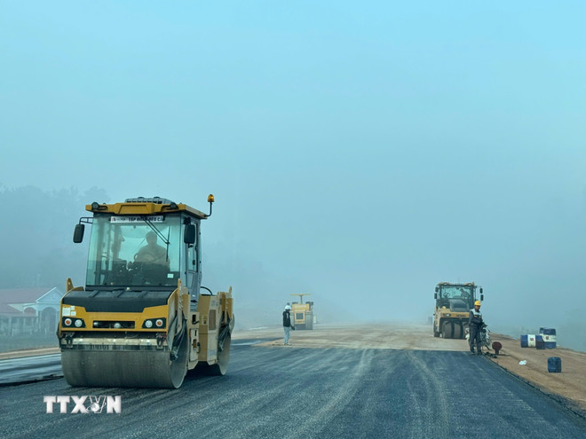 Tuyến cao tốc Đồng Đăng-Trà Lĩnh kết nối Cao Bằng với các trung tâm kinh tế lớn của cả nước đang khẩn trương được hoàn thành. (Ảnh: TTXVN phát)