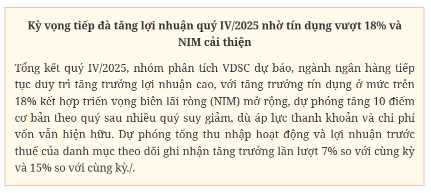 Trong báo cáo đánh giá cập nhật ngành ngân hàng quý IV/2025 vừa phát hành, Công ty cổ phần Chứng khoán Rồng Việt (VDSC) cho rằng, tăng trưởng tín dụng cả năm có thể đạt trên 18%, dù Ngân hàng Nhà nước đang kiểm soát chặt hạn mức tăng trưởng tín dụng mới..png)