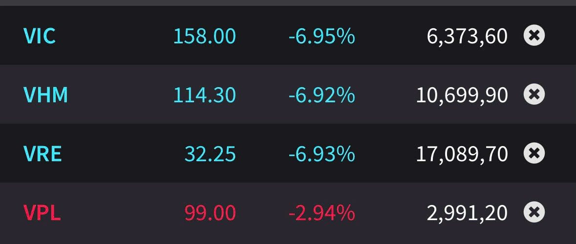Phiên giao dịch ngày 25/12, ngay sau khi thông tin Vingroup rút đăng ký đầu tư dự án đường sắt tốc độ cao Bắc – Nam, loạt cổ phiếu họ Vin gồm Vingroup (VIC), Vinhomes (VHM), Vincom Retail (VRE) đều nhanh chóng giảm xuống mức giá sàn.