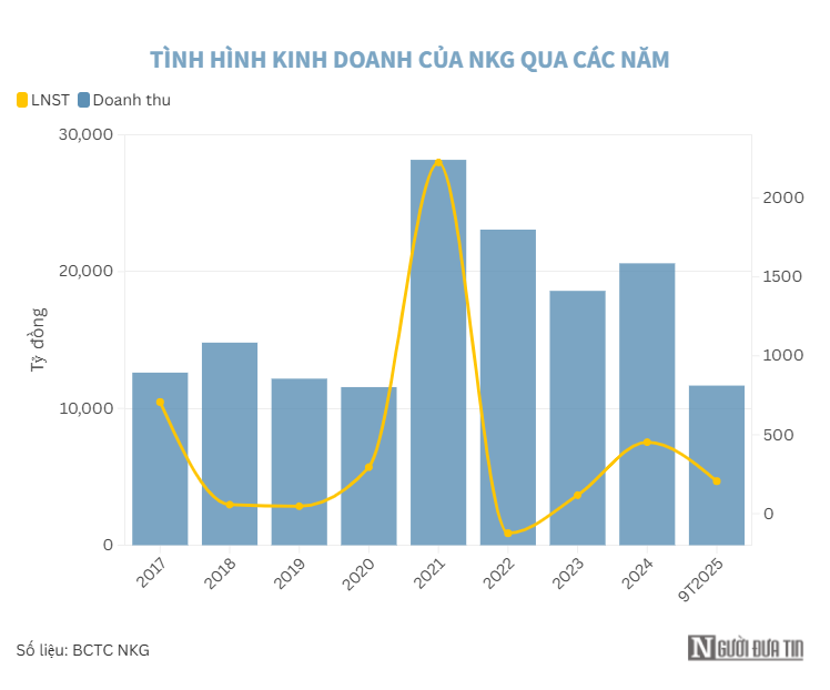 Tính chung 9 tháng năm 2025, doanh thu đạt 11.671 tỷ đồng, giảm 27,7% so với cùng kỳ; lợi nhuận sau thuế đạt 206,5 tỷ đồng, giảm 52,5% so với cùng kỳ năm trước.