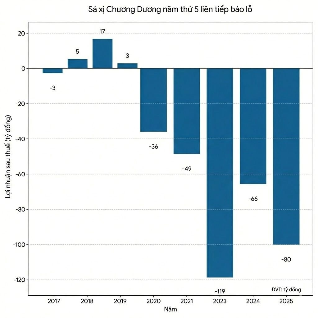 Tính đến cuối năm 2025, lỗ lũy kế của công ty đã vượt 346,9 tỷ đồng, khiến vốn chủ sở hữu âm 157,7 tỷ đồng.