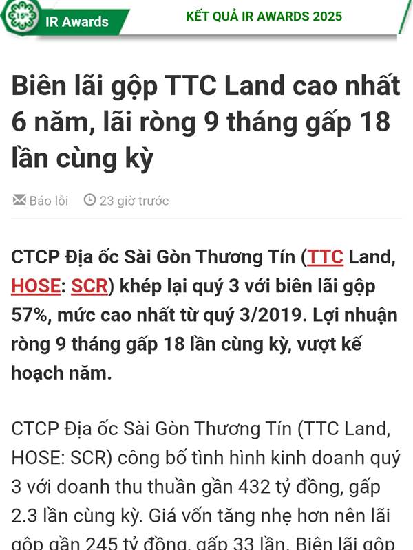 Phản hồi bài viết SCR: Lợi nhuận ròng 9 tháng gấp 18 lần cùng kỳ, vượt kế hoạch năm