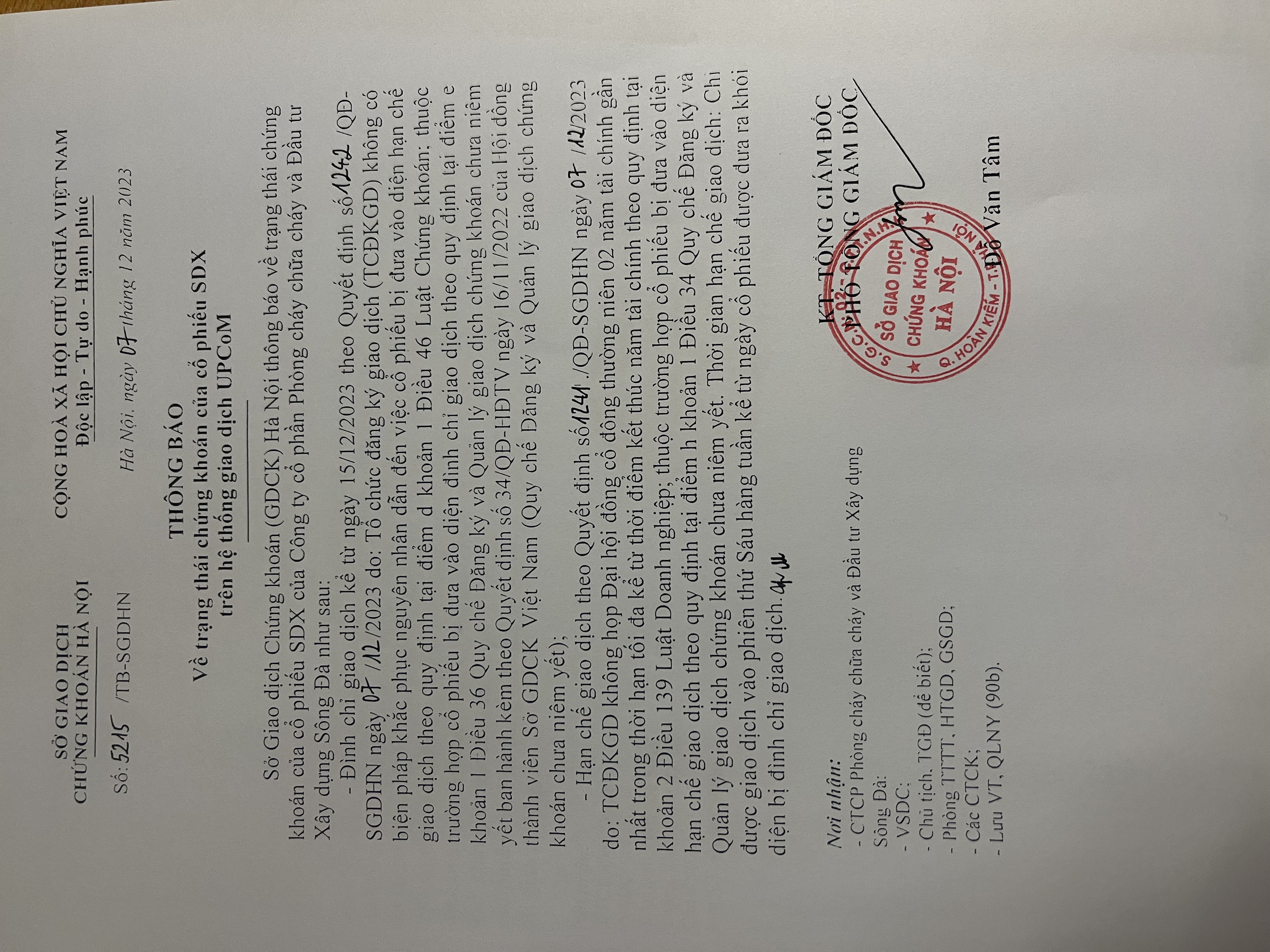SDX: Thông báo về trạng thái chứng khoán