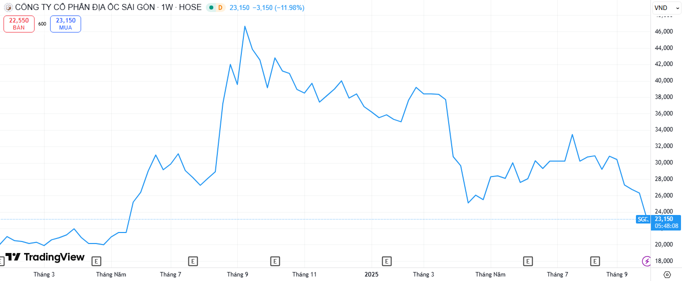 Với mức giá hiện tại, cổ phiếu SGR đang ở vùng giá thấp nhất kể từ tháng 5/2024. Còn xét từ đầu năm, SGR đã giảm 37,69%. Sự vận động của SGR ngược chiều so với nhiều cổ phiếu bất động sản miền Nam như DXG (56,13%), PDR (19,48%), NVL (+49,04%)…