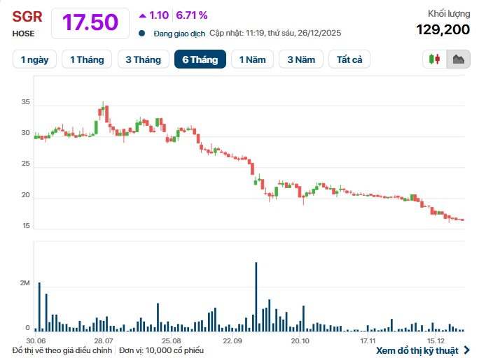 Đáng chú ý, nhịp bật tăng này diễn ra sau giai đoạn điều chỉnh mạnh, khi so với cách đây khoảng 4 tháng, thị giá SGR đã “bốc hơi” gần 50%.