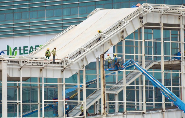 Hệ thống dẫn đậu tàu bay đã vận chuyển đến công trường 100 bộ VDGS (đạt gần 80%), nhà thầu đang khần trương thi công giá đỡ, lắp đặt thiết bị tại nhiều vị trí Gate (cổng). Đồng thời, đẩy nhanh việc lắp đặt, hoàn thiện hệ thống xử lý hành lý; thang cuốn, thang bộ hành; thang máy.