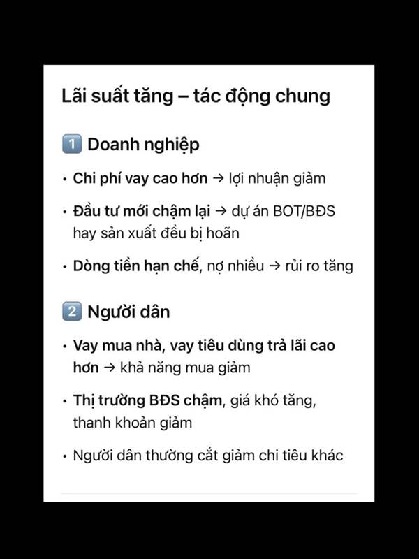 Theo ghi nhận, mặt bằng lãi suất cho vay tăng mạnh khoảng 2 - 3% trong thời gian gần đây làm giảm nhu cầu vay vốn, chi phí huy động vốn tăng nhanh hơn lãi suất cho vay có thể gây sức ép lên NIM và làm chậm tăng trưởng tín dụng. Tuy nhiên, mặt bằng lãi suất cao hơn cũng giúp ngân hàng cải thiện khả năng huy động vốn, ổn định thanh khoản và củng cố an toàn hệ thống trong trung hạn.