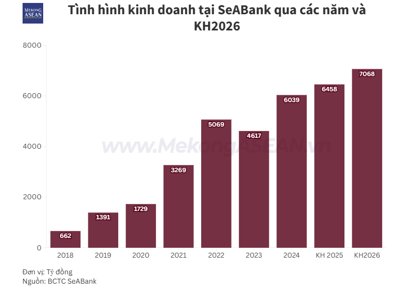 Sau khi vượt kế hoạch lợi nhuận năm 2025 chỉ trong 9 tháng, SeABank đặt mục tiêu lợi nhuận trước thuế đạt 7.068 tỷ đồng trong năm 2026, cùng tăng trưởng tín dụng và huy động vốn ở mức cao.