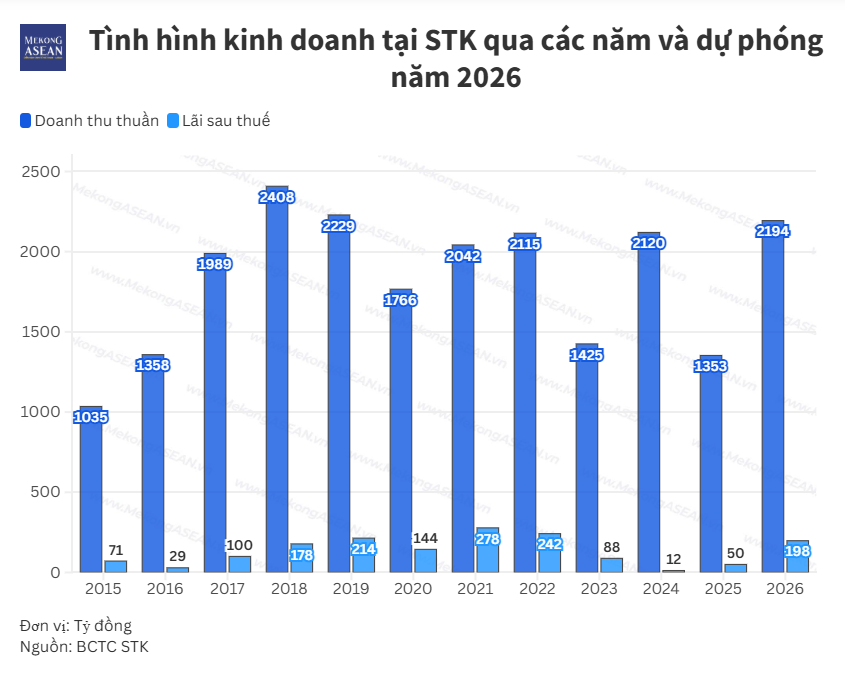 Báo cáo nhận định, trong ngắn hạn, hoạt động kinh doanh của STK vẫn chịu áp lực khi nhu cầu thị trường chưa hồi phục hoàn toàn, kéo theo biên lợi nhuận gộp ở mức thấp. Tuy nhiên, doanh nghiệp đã ghi nhận sự cải thiện về sản lượng và kỳ vọng xu hướng này sẽ rõ nét hơn từ nửa cuối năm 2026 khi các đơn hàng quay trở lại.