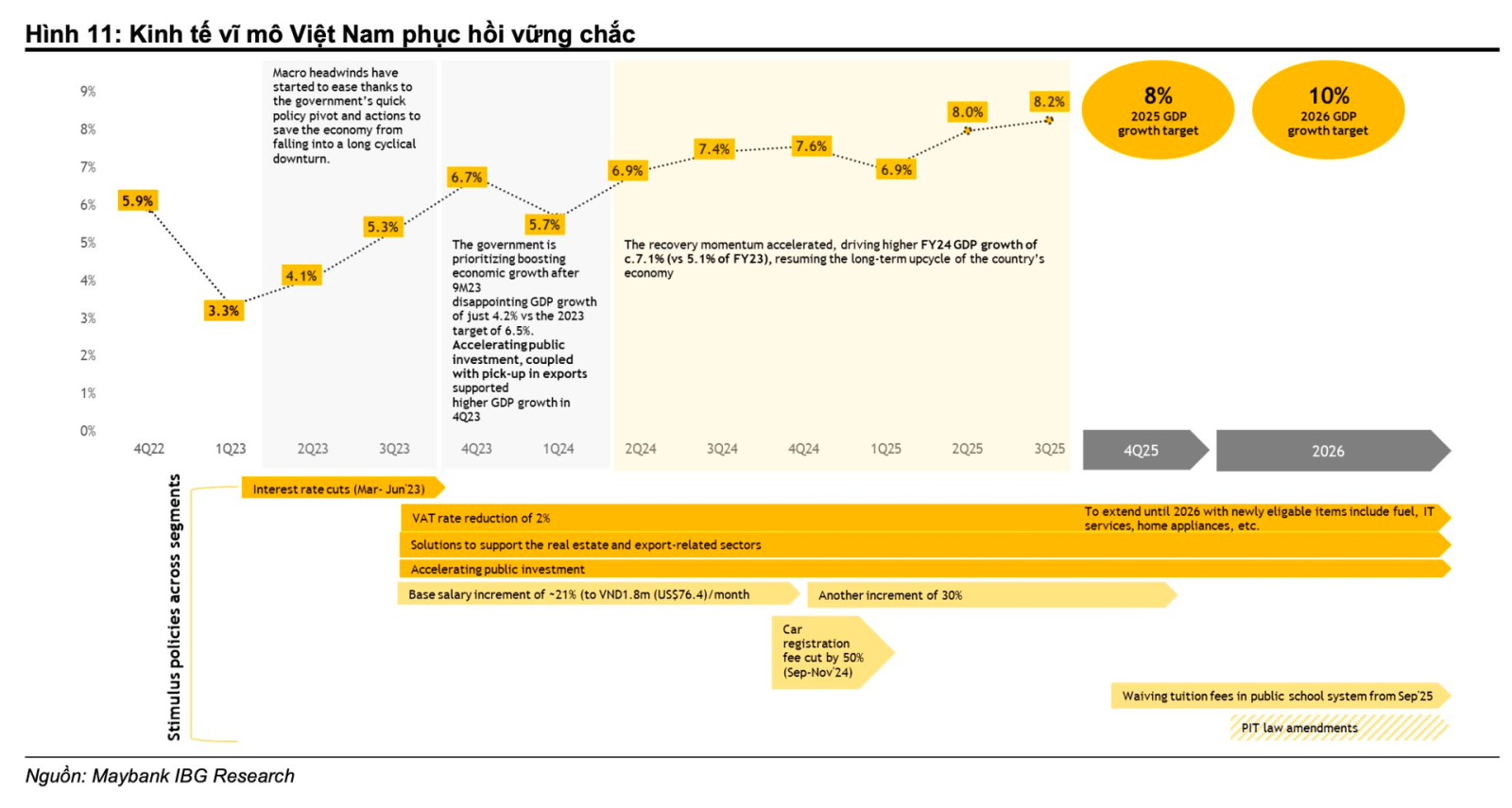 Với mục tiêu tăng trưởng GDP đầy tham vọng giai đoạn 2026–2030 là 10% mỗi năm, MSVN kỳ vọng Chính phủ sẽ tiếp tục đưa ra các chính sách hỗ trợ phía cầu để kích thích tiêu dùng – vốn là động lực tăng trưởng trọng yếu của Việt Nam.