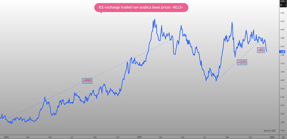 Rõ ràng, giá cà phê là một phương trình phức tạp, bị ảnh hưởng bởi nguồn cung trong quá khứ, độ trễ của chuỗi cung ứng và động lực thị trường, chứ không chỉ bởi các chính sách thuế quan.