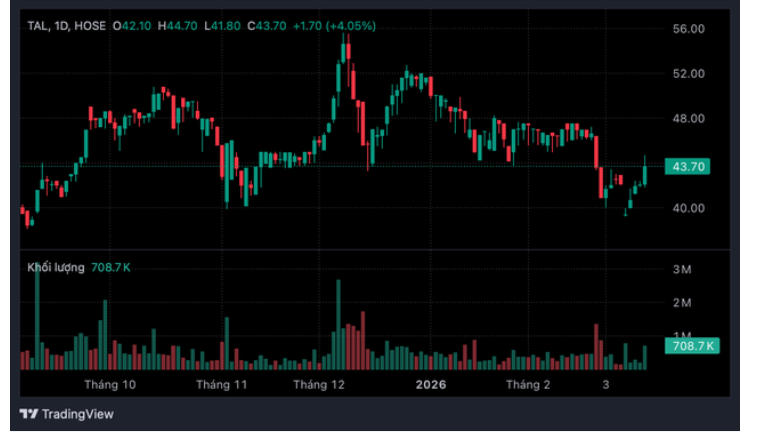 Trên thị trường chứng khoán, cổ phiếu TAL chuyển niêm yết sang Sở Giao dịch Chứng khoán Tp.HCM (HoSE) từ ngày 1/8/2025. Tính đến phiên giao dịch ngày 13/3/2026, thị giá cổ phiếu này đã tăng khoảng 42% so với thời điểm bắt đầu giao dịch trên HoSE, từ 30.600 đồng lên 43.700 đồng/cổ phiếu.