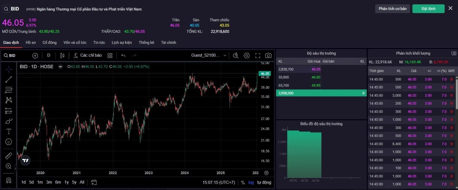 Cổ phiếu BID nổi bật nhất nhóm ngân hàng khi tăng trần với thanh khoản lớn.