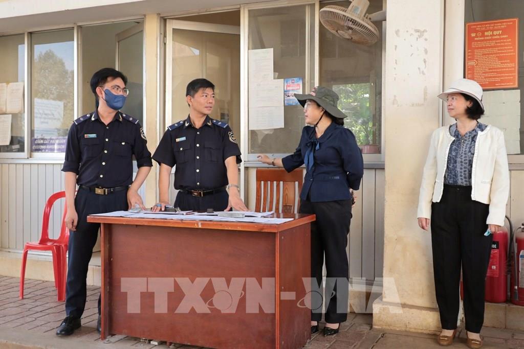 Bà Đinh Thị Phương Khanh, Phó Giám đốc Sở Nông nghiệp và Môi trường tỉnh Tây Ninh (thứ 2, từ phải sang) có mặt tại Cửa khẩu quốc tế Xa Mát vào chiều ngày 31/1/2026 để kịp thời tháo gỡ khó khăn. Ảnh: Thanh Tân - TTXVN