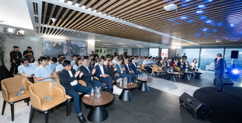 Các thí sinh xuất sắc của “AI Thực chiến” cũng nhận được sự chào đón nồng nhiệt từ Lãnh đạo ngân hàng Techcombank và hệ sinh thái: Bà Nguyễn Thị Dịu – Phó Chủ tịch Hội đồng quản trị Masterise Group; Ông Phùng Quang Hưng – Tổng Giám đốc One Mount Group; Bà Thái Minh Diễm Tú – Giám đốc Khối Tiếp thị Techcombank cùng nhiều đại diện lãnh đạo từ khối nhân sự, công nghệ, dữ liệu khác.
