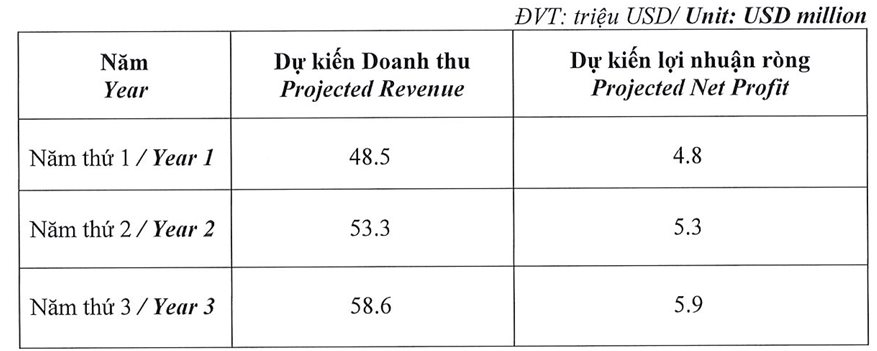 Với dự án này, TCO dự kiến hiệu quả tài chính trong 3 năm đầu sẽ mang về doanh thu lần lượt là 48,5 - 53,3 - 58,6 triệu USD và lãi ròng 4,8 - 5,3 - 5,9 triệu USD (tương đương doanh thu 1.200 - 1.500 tỷ đồng và lợi nhuận 120 - 150 tỷ đồng).