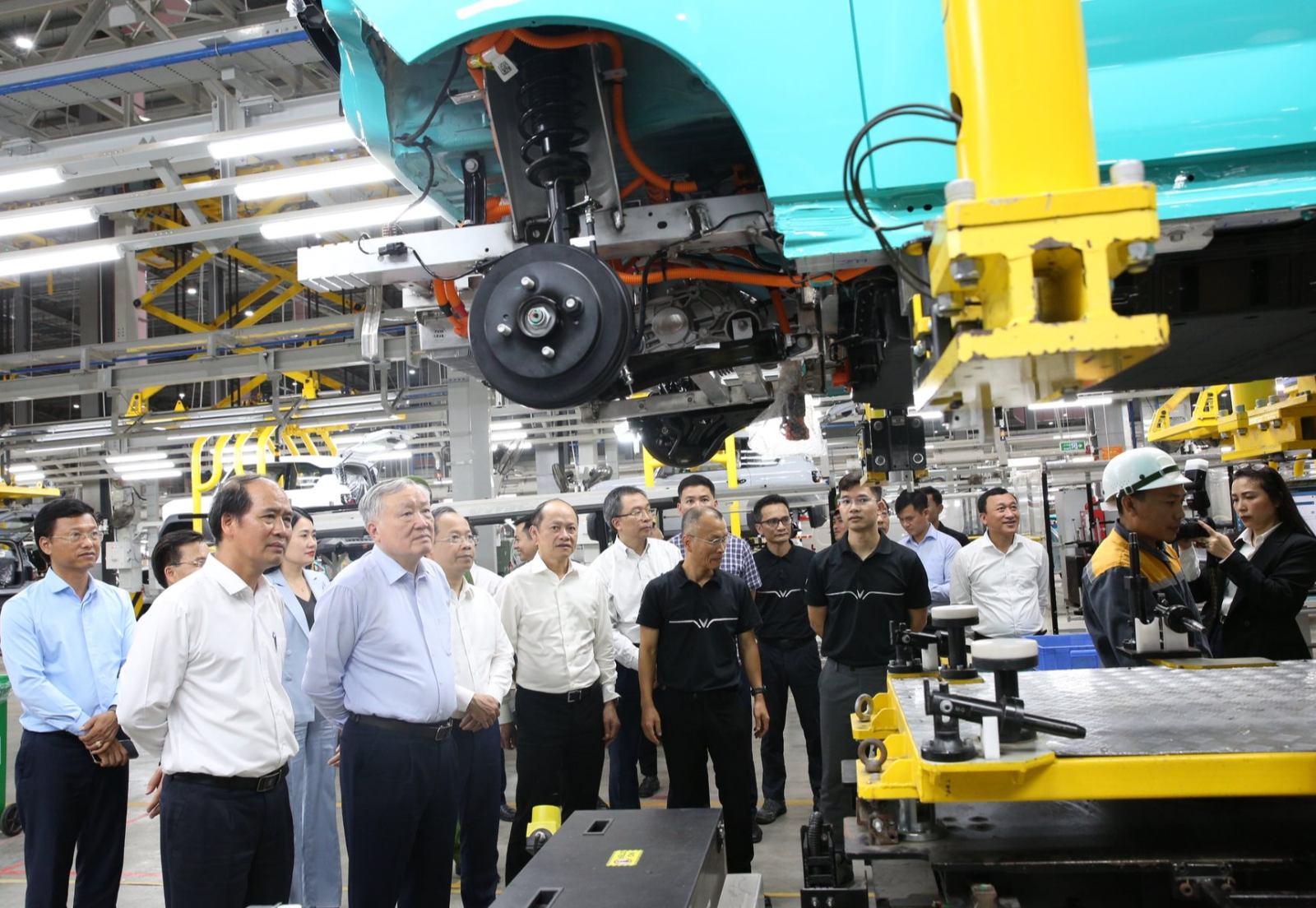 Sau đó, Phó Thủ tướng Thường trực Chính phủ Nguyễn Hoà Bình và đoàn công tác đã tới kiểm tra hoạt động tại Nhà máy sản xuất ô tô điện VinFast Hà Tĩnh.