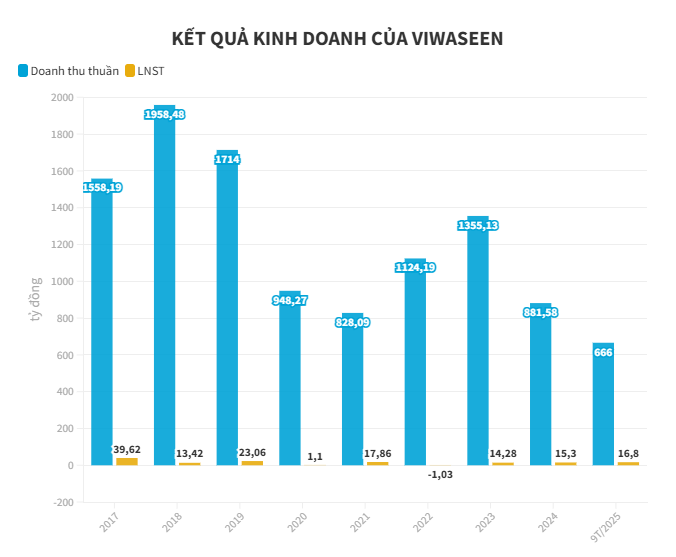 Về kết quả kinh doanh, trong 9 tháng đầu năm 2025, Viwaseen ghi nhận 666 tỷ đồng doanh thu thuần, tăng 26% so với cùng kỳ; lợi nhuận sau thuế đạt gần 17 tỷ đồng, tăng 42%.