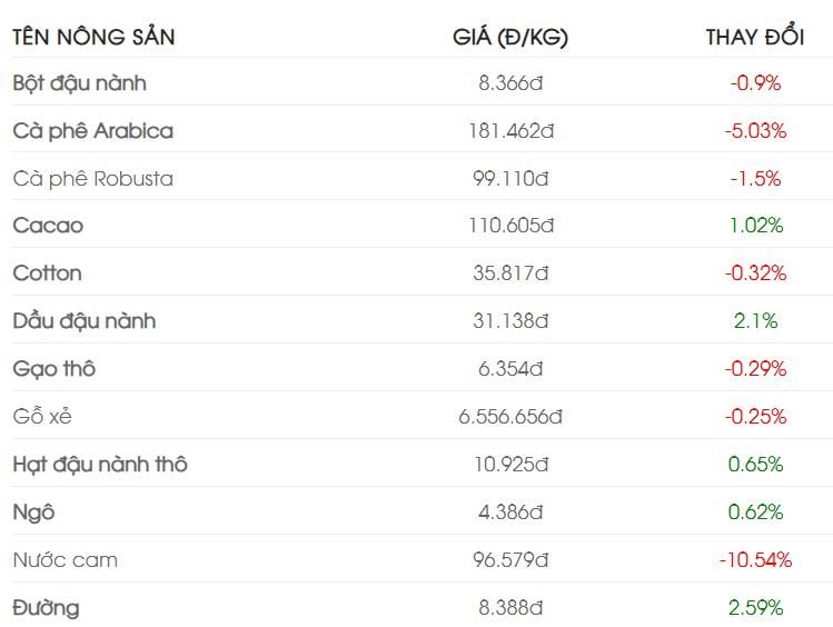 Diễn biến giá một số hàng hóa, ghi nhận sáng 16/2: