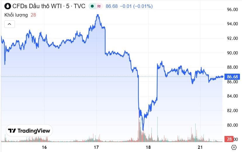 Sau khi tăng mạnh trong phiên trước, giá dầu quay đầu giảm do kỳ vọng các cuộc đàm phán Mỹ - Iran có thể nối lại và giúp nới lỏng nguồn cung. Giá dầu Brent giảm 95 cent (1%) xuống 94,53 USD/thùng, trong khi dầu WTI giảm 1,54 USD (1,72%) xuống 88,07 USD/thùng. Hợp đồng WTI tháng 6 cũng giảm 1,09 USD xuống 86,37 USD/thùng.