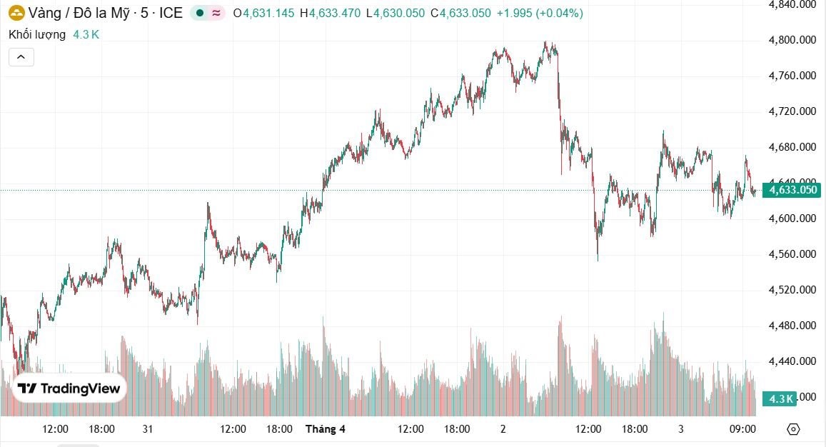 Trái ngược với dầu, giá vàng chịu áp lực giảm khi dữ liệu kinh tế Mỹ tích cực làm giảm kỳ vọng nới lỏng tiền tệ. Giá vàng giao ngay giảm 0,8% xuống 4.638,54 USD, thậm chí có thời điểm giảm 1,37% xuống 4.612 USD/ounce. Hợp đồng vàng kỳ hạn tháng 6 cũng giảm 0,87% xuống 4.639 USD.