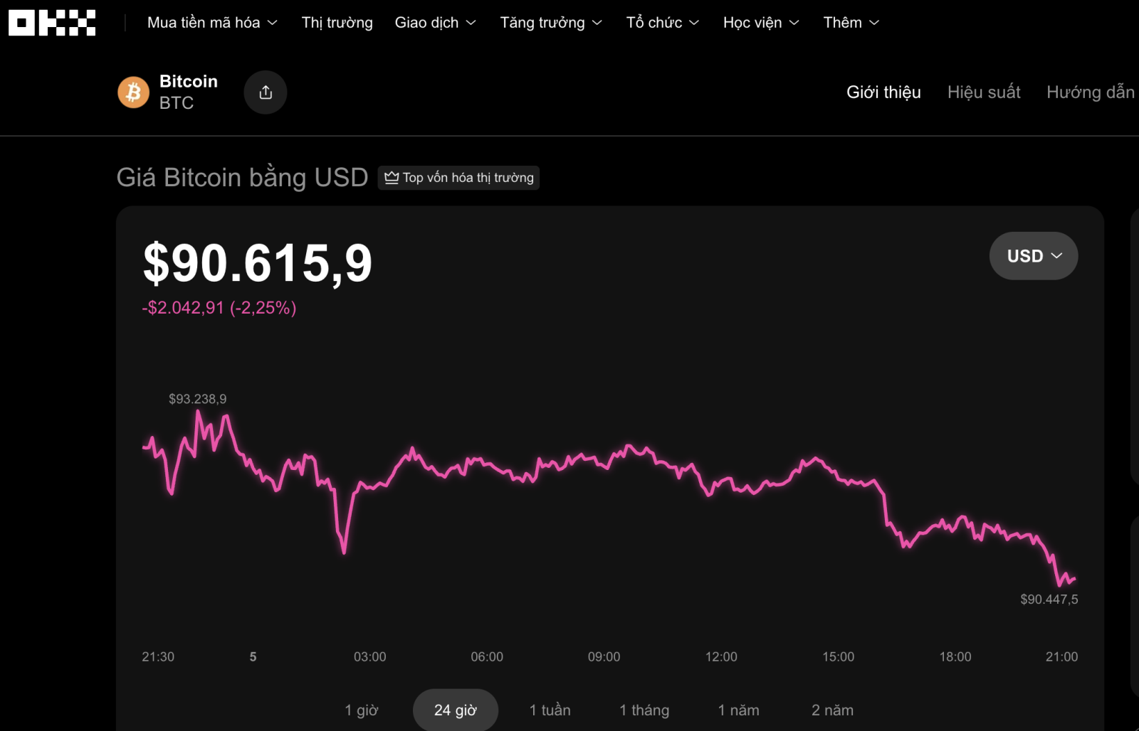 Bitcoin đang giao dịch ở mức 90.615 USD Nguồn: OKX