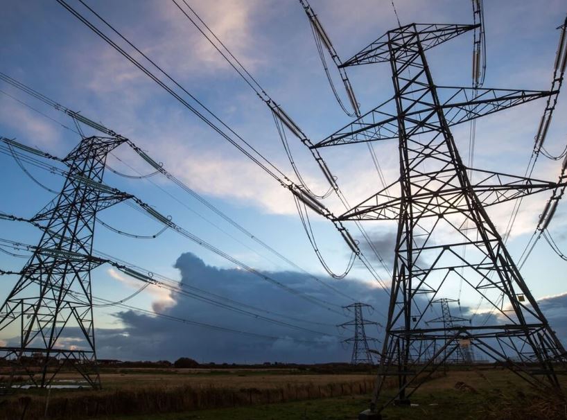 Các cột truyền tải điện ở Dungeness, Anh. Ảnh: Bloomberg