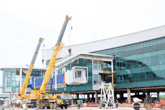 Thi công lắp đặt cầu ống lồng nhà ga hành khách Sân bay Long Thành. Ảnh: DNCC