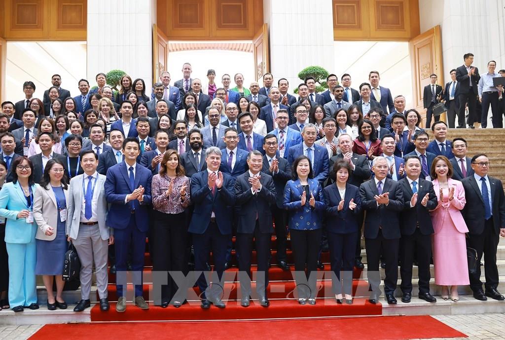Đoàn doanh nghiệp cấp cao Hội đồng Kinh doanh Hoa Kỳ - ASEAN (USABC) tham dự buổi tiếp và làm việc với Thủ tướng Lê Minh Hưng. Ảnh: Dương Giang – TTXVN