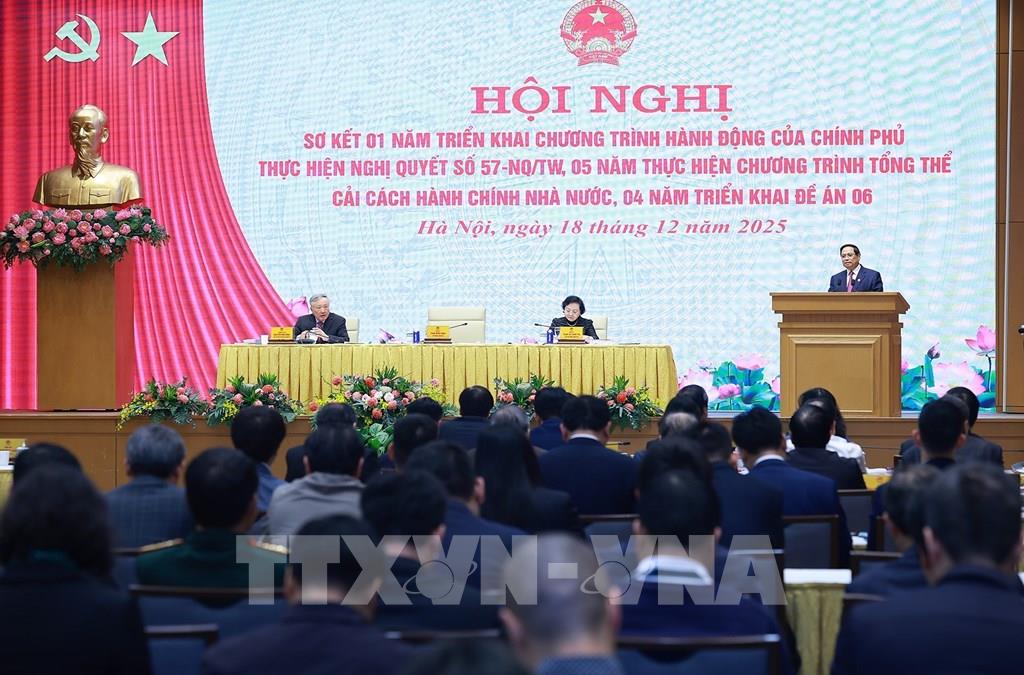 Chiều 18/12, Thủ tướng Chính phủ Phạm Minh Chính, Trưởng ban Chỉ đạo của Chính phủ về phát triển khoa học, công nghệ, đổi mới sáng tạo, chuyển đổi số và Đề án 06 đã chủ trì Hội nghị sơ kết 1 năm triển khai Chương trình hành động của Chính phủ thực hiện Nghị quyết số 57-NQ/TW, 5 năm thực hiện chương trình tổng thể cải cách hành chính Nhà nước; 4 năm triển khai Đề án 06.