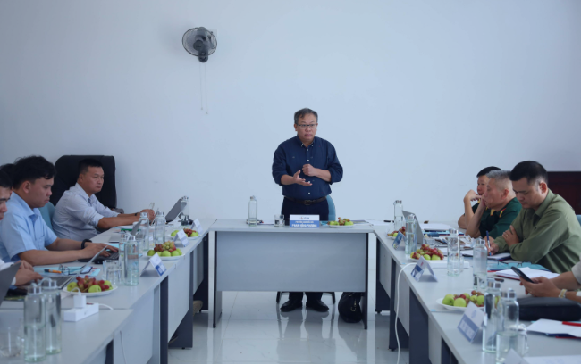 Phó Tổng giám đốc EVN Phạm Hồng Phương (đứng) chủ trì họp giao ban công trường Dự án Nhà máy Thủy điện tích năng Bác Ái