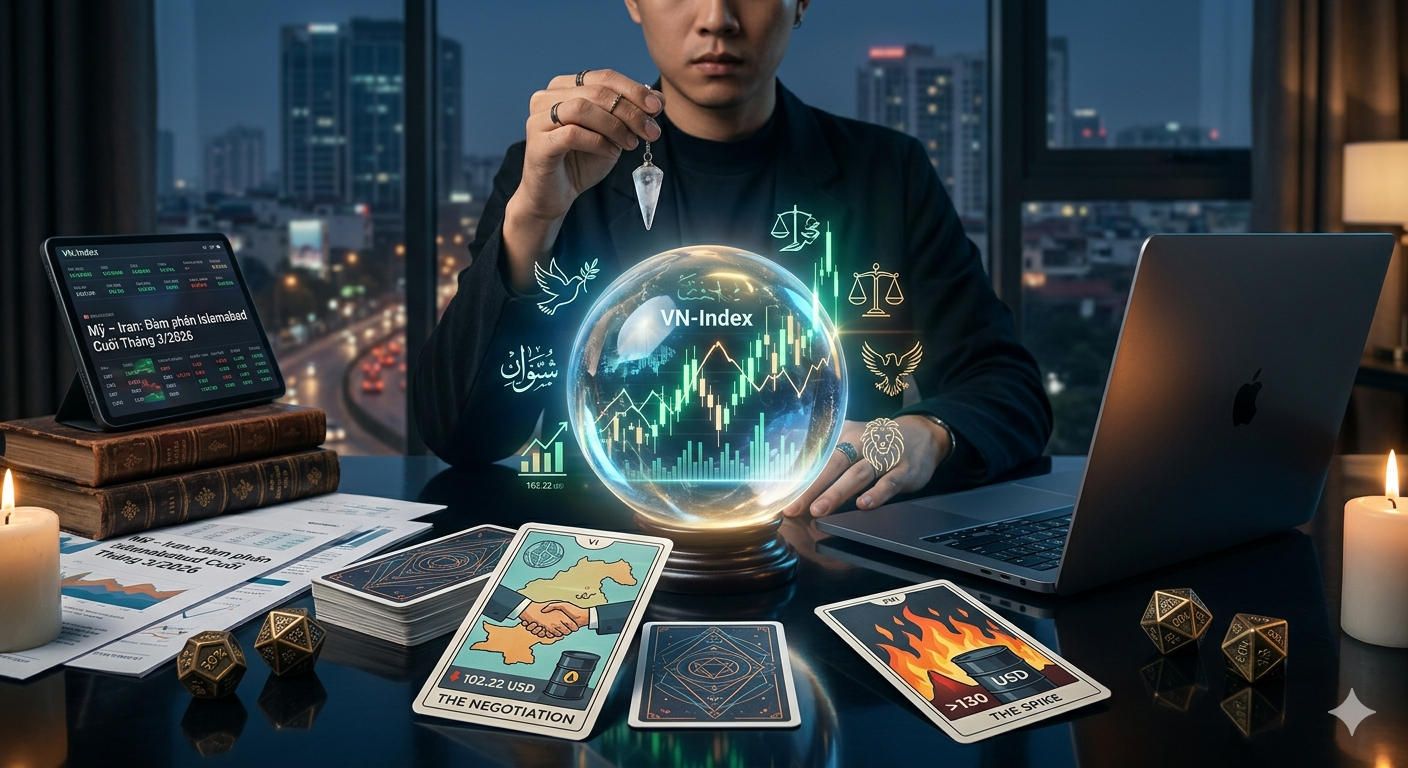 Bối cảnh địa chính trị: Cuộc đàm phán Mỹ – Iran diễn ra tại Islamabad cuối tháng 3/2026, sau cái chết của Đại giáo chủ Khamenei và chiến dịch quân sự Operation Epic Fury. Giá dầu Brent đã giảm xuống 102.22 USD/thùng (-2%), WTI còn 90.32 USD/thùng (-2.2%), phản ánh kỳ vọng hòa bình.