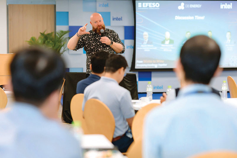 Tiến sĩ Piotr Danielski trao đổi trong chuyến làm việc tại nhà máy của hãng Intel Products Việt Nam ở TPHCM hồi tháng 11-2025. Ảnh: Nguyễn Trường
