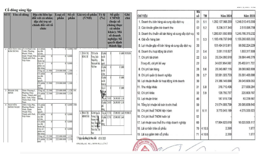 Người đại diện pháp luật là ông Hoàng Ngọc Hoài Phong, sinh năm 1972, hộ khẩu thường trú tại phường Phú Thọ, TP. Hồ Chí Minh, kiêm vai trò Tổng Giám đốc. Bà Phạm Thị Minh Tâm, sinh năm 1956, hộ khẩu thường trú tại phường Thuận Hóa, TP. Huế, giữ vai trò Chủ tịch HĐQT công ty.