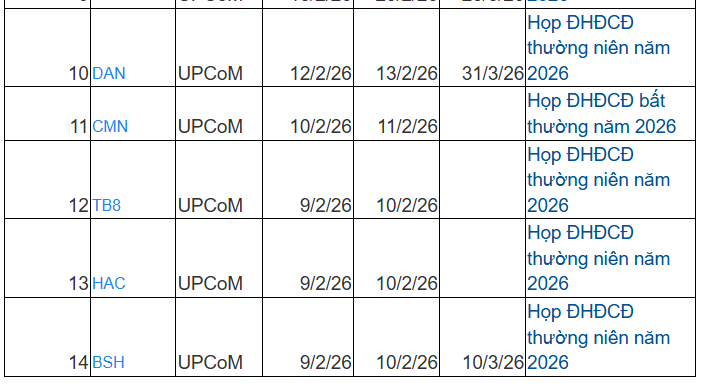 Danh sách 14 doanh nghiệp trên hệ thống giao dịch UPCoM chốt quyền họp đại hội cổ đông năm 2025 tuần tới: