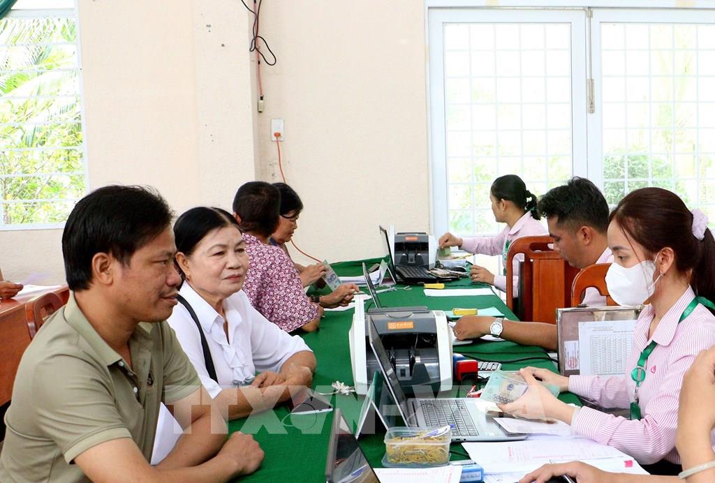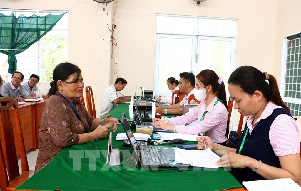 Người dân đến giao dịch tại điểm giao dịch xã Hòa Bình, thuộc Phòng giao dịch Ngân hàng Chính sách xã hội Trà Ôn, tỉnh Vĩnh Long. Ảnh: Lê Thúy Hằng - TTXVN