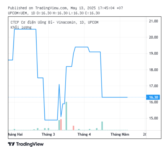 Cụ thể, 3 tháng gần đây, UEM ghi nhận các giao dịch trong khoảng giá từ 15.000 đồng - 20.000 đồng mỗi cổ phiếu, đồng thời khối lượng thanh khoản thường rất hạn chế, chỉ khoảng trên dưới 1.000 cổ phiếu mỗi phiên, trong đó nhiều phiên không có thanh khoản. Đây có thể xem là một trong những trở ngại trong kế hoạch thoái vốn khỏi UEM của TKV.
