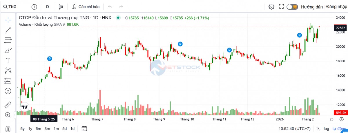 Động thái mua vào diễn ra khi cổ phiếu TNG giao dịch quanh mức 22,700 đồng/cp, tiệm cận vùng giá cao nhất lịch sử. So với giai đoạn giảm mạnh do lo ngại thuế quan của Mỹ vào tháng 4/2025, thị giá hiện gần gấp đôi. Tạm tính theo vùng giá này, thương vụ dự kiến tiêu tốn khoảng 125 tỷ đồng, qua đó nâng tổng giá trị cổ phần ông Mạnh nắm giữ lên xấp xỉ 385 tỷ đồng.