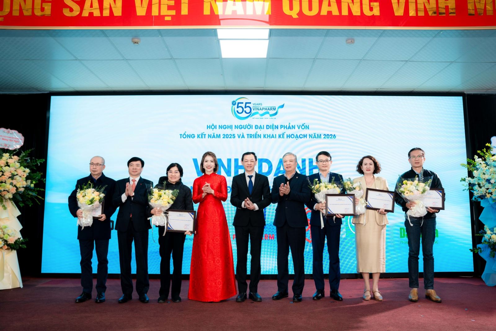 Hội nghị vinh dự đón tiếp PGS.TS.BSCKII Nguyễn Tri Thức - Ủy viên Ban Thường vụ Đảng ủy, Thứ trưởng Bộ Y tế; ông Nguyễn Quốc Huy - Thành viên HĐTV, Tổng Giám đốc Tổng công ty Đầu tư và Kinh doanh vốn Nhà nước (SCIC), cùng đại diện lãnh đạo các đơn vị trực thuộc Bộ Y tế, Liên đoàn Thương mại và Công nghiệp Việt Nam (VCCI), Hiệp hội Doanh nghiệp Dược Việt Nam. Tham dự Hội nghị còn có các thành viên Hội đồng quản trị, Ban Điều hành Vinapharm; lãnh đạo các doanh nghiệp có vốn góp và Người đại diện phần vốn của Vinapharm tại các doanh nghiệp.