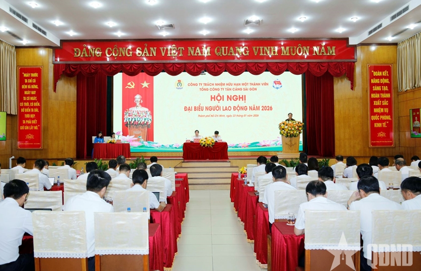 Ngày 23-1, tại TP Hồ Chí Minh, Tổng công ty Tân Cảng Sài Gòn đã tổ chức Hội nghị đại biểu người lao động năm 2026. Thiếu tướng Ngô Minh Thuấn, Tư lệnh Binh đoàn 20, Chủ tịch kiêm Tổng Giám đốc Tổng công ty và Thượng tá Nguyễn Phương Nam, Phó tư lệnh, Phó tổng giám đốc, Chủ tịch Công đoàn Tân Cảng Sài Gòn đồng chủ trì.