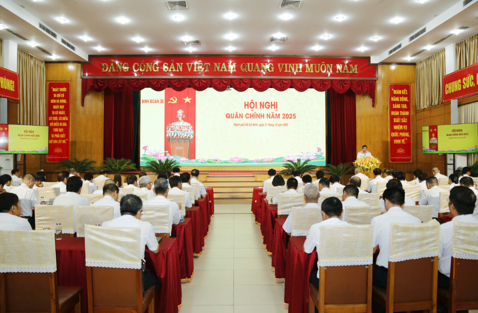 Sáng 31/12, tại TP. Hồ Chí Minh, Binh đoàn 20 - Tổng công ty Tân cảng Sài Gòn tổ chức Hội nghị Quân chính năm 2025. Thiếu tướng Ngô Minh Thuấn, Tư lệnh Binh đoàn chủ trì. Đại tá Nguyễn Năng Toàn, Bí thư Đảng ủy, Phó Tư lệnh Binh đoàn quán triệt nghị quyết lãnh đạo năm 2026 của Đảng ủy Binh đoàn.
