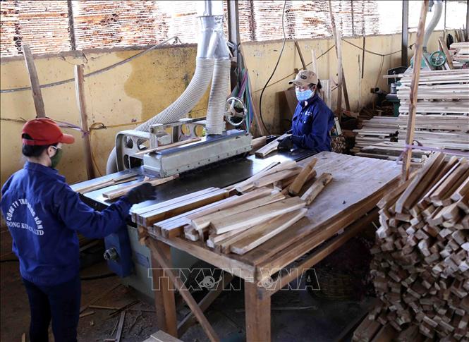 Sản xuất dăm gỗ và gỗ ghép thanh tại Công ty TNHH Sông Kôn tại Khu Công ngiệp Phú Tài (Bình Định). Ảnh: Vũ Sinh/TTXVN