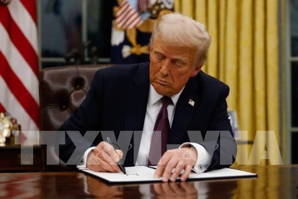 Tổng thống Mỹ Donald Trump ký sắc lệnh tại Nhà Trắng. Ảnh: Getty Images/TTXVN