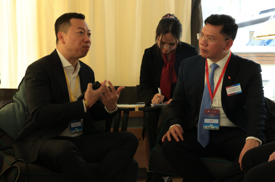 Ông Hoàng Nguyên Dinh, Phó Chủ tịch Ủy ban Nhân dân Thành phố Hồ Chí Minh, thảo luận bên lề với ông Kaiser Ng, CFO của nền tảng Binance. (Ảnh: Anh Hiển/TTXVN)