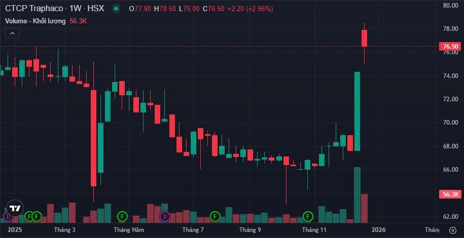 Trên thị trường chứng khoán, cổ phiếu TRA đang giao dịch ở vùng giá hơn 76.000 đồng/cp - cao nhất kể từ tháng 7/2024. Mã diễn biến tích cực trong một tuần trở lại đây.