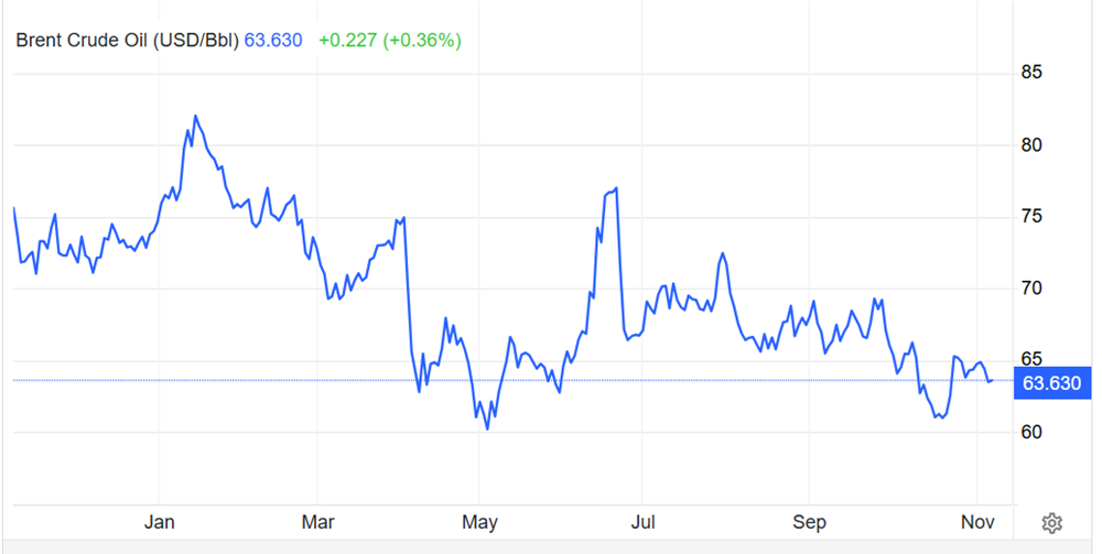 Ổn định trong quý III nhưng giá dầu có diễn biến phức tạp quý IV. Theo dữ liệu Trading Economics, giá dầu thô đã rớt sâu từ 68 USD/thùng cuối quý III xuống 60 USD/thùng vào giữa tháng 10 do tình hình leo thang căng thẳng trong quan hệ thương mại Mỹ và Trung Quốc, hiện đã phục hồi lên 64 USD/thùng.