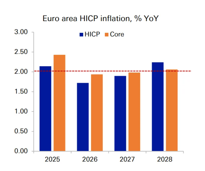 Năm 2026, tăng trưởng khu vực đồng Euro dự kiến đạt 1,1%. Tiêu dùng tiếp tục đóng vai trò quan trọng, trong khi đầu tư được thúc đẩy bởi các chương trình quốc phòng và hạ tầng ở cấp quốc gia và EU. Tuy vậy, xuất khẩu có thể tiếp tục yếu do cạnh tranh toàn cầu và tỷ giá.